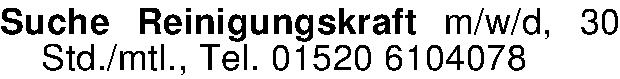 Anzeigentitel: Suche Reinigungskraft m/w/d, 30 Std./mtl., Tel. 01520 6104078