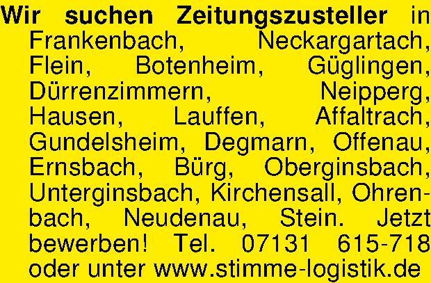 Anzeigentitel: Wir suchen Zeitungszusteller in Frankenbach, Neckargartach, Flei
