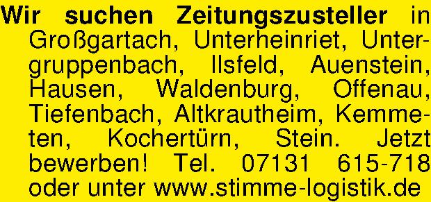 Anzeigentitel: Wir suchen Zeitungszusteller in Großgartach, Unterheinriet, Unte