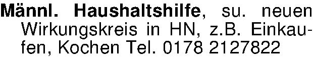 Anzeigentitel: Männl. Haushaltshilfe, su. neuen Wirkungskreis in HN, z.B. Einka