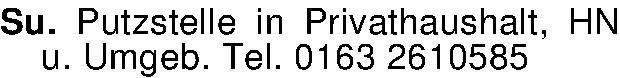 Anzeigentitel: Su. Putzstelle in Privathaushalt, HN u. Umgeb. Tel. 0163 2610585