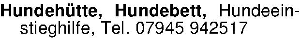 Anzeigentitel: Hundehütte, Hundebett, Hundeeinstieghilfe, Tel. 07945 942517