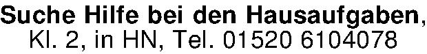 Anzeigentitel: Suche Hilfe bei den Hausaufgaben, Kl. 2, in HN, Tel. 01520 61040