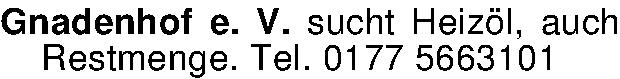 Anzeigentitel: Gnadenhof e. V. sucht Heizöl, auch Restmenge. Tel. 0177 5663101